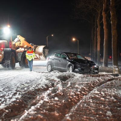 Roderwolde – Op de Sandebuurserdijk in Roderwolde is vanavond een bestelbusje van de weg geraakt. Het voertuig vloog uit de bocht en kwam daarbij op zijn kant in een naastgelegen