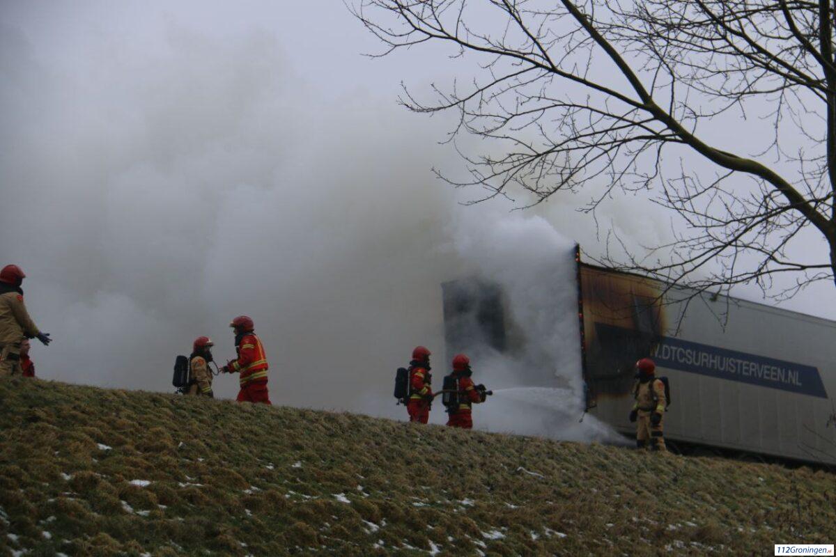 Veendam – De N33 richting Zuidbroek is vrijdagmiddag korte tijd volledig afgesloten geweest vanwege een brandende vrachtwagen. Er werd `middelbrand` gegeven en ook brandweer Stad kwam met een extra voertuig.