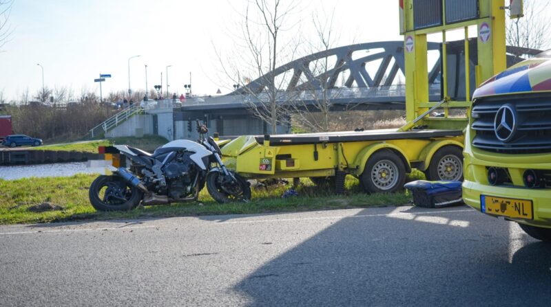 Ernstig ongeval bij Den Ham, motorrijder tegen pijlwagen(tekstkar)
