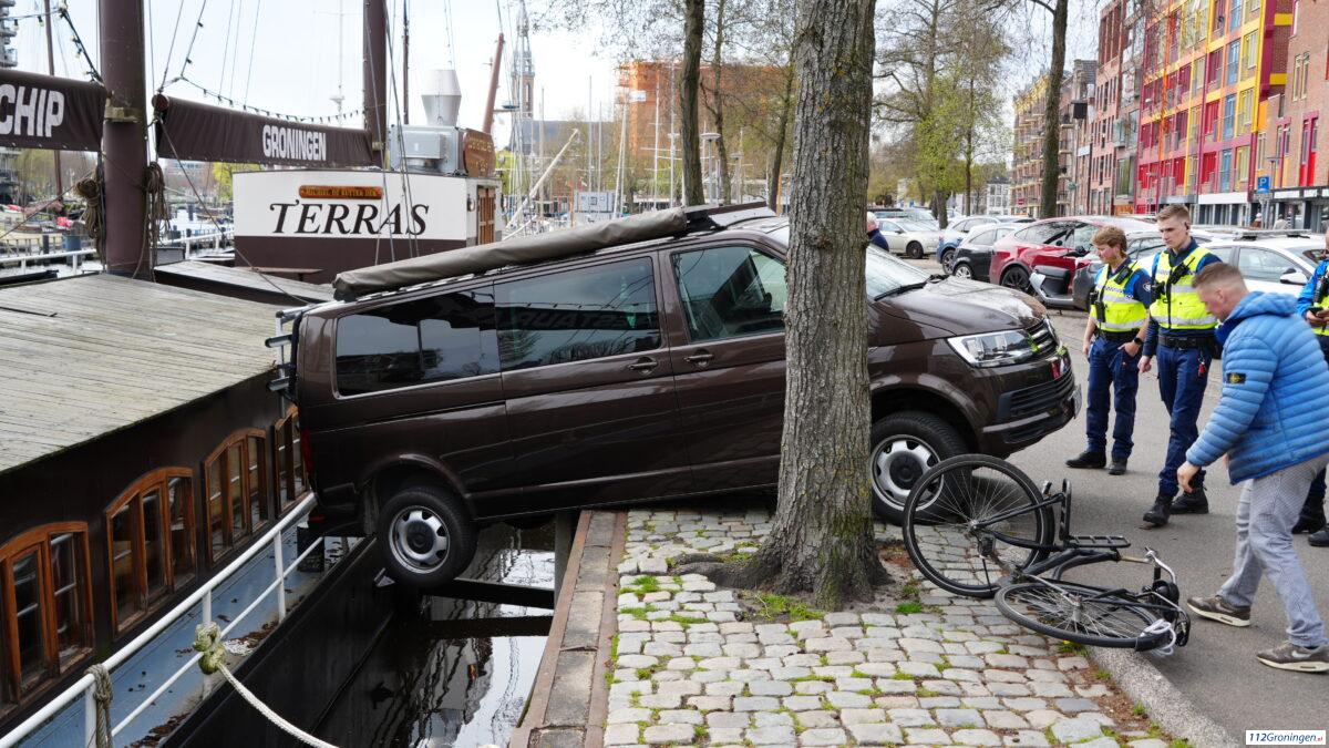 Groningen – Aan de Oosterkade in Groningen is zaterdagmiddag een busje uit een parkeervak gerold en tot stilstand gekomen tegen het pannenkoekenschip. Bij het incident raakte niemand gewond. Handhaving kwam