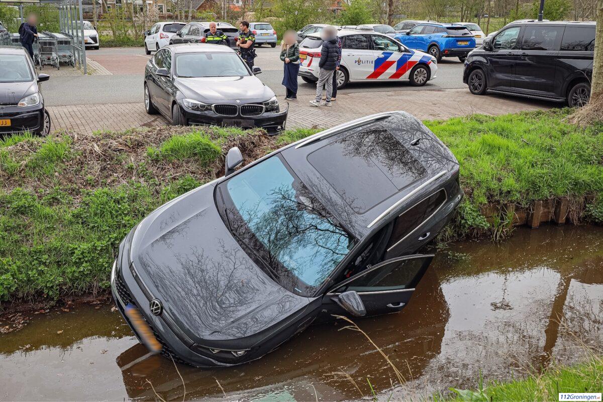 Leek – Op de Schans in Leek heeft vanmorgen een aanrijding plaatsgevonden waarbij een auto in het water is beland. Een automobiliste reed op een parkeerplaats tegen een stilstaande auto