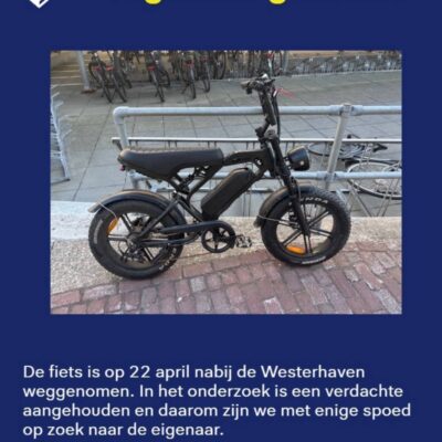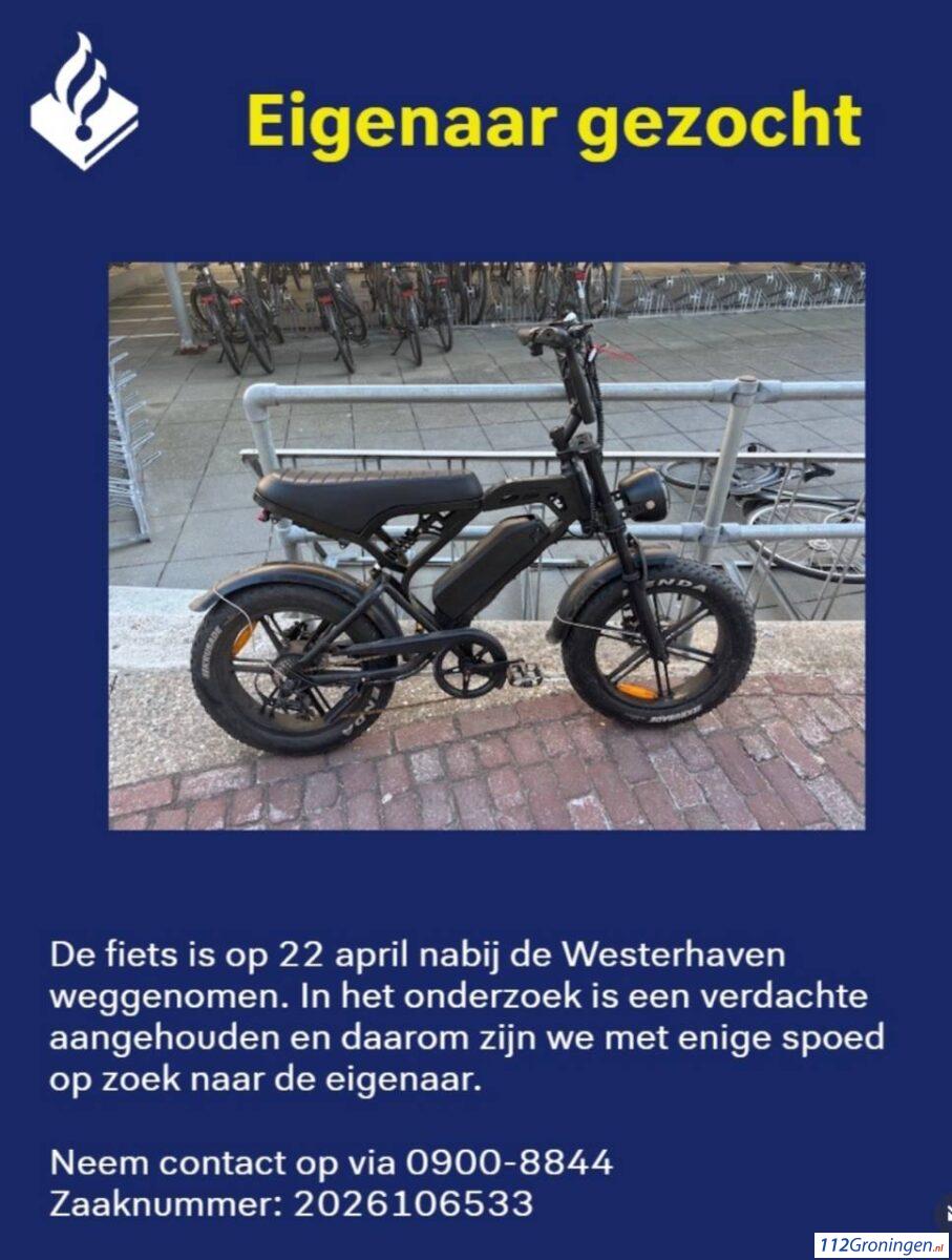 Groningen – Woensdagmiddag 22 april omstreeks 16:15 uur is nabij de Westerhaven een fat-bike weggenomen. De verdachte is daarbij aangehouden en zit vast. Daarom zijn ze met enige spoed op