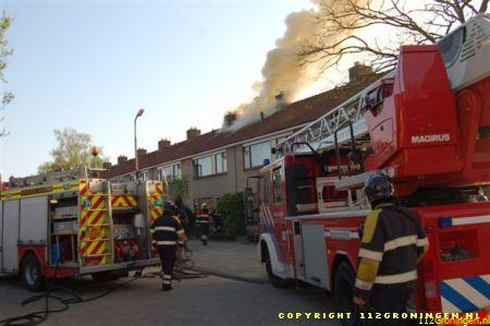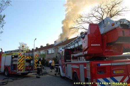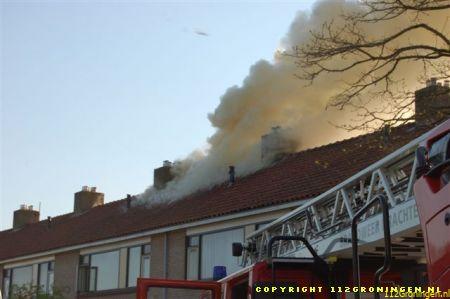 brandweer kon niet voorkomen dat de brand een grot gat in het dak had