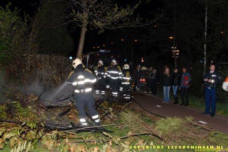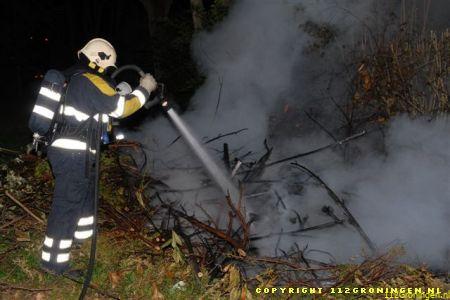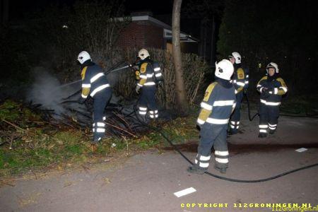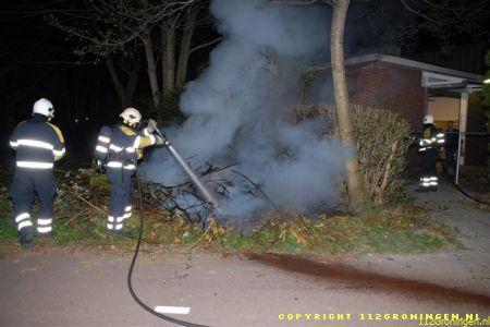 Hotel Leek veroorzaakt. Een grote stapel snoeihout werd in brand