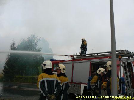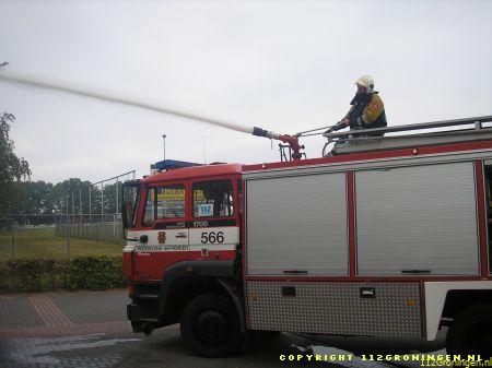 De brandweer heeft de brand geblust met 4 stralen lagedruk en met de waterkanon op de brandweer auto (566).
