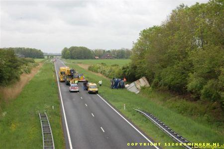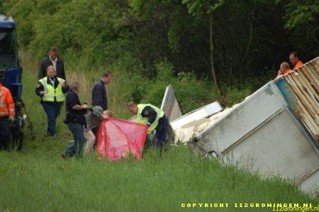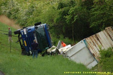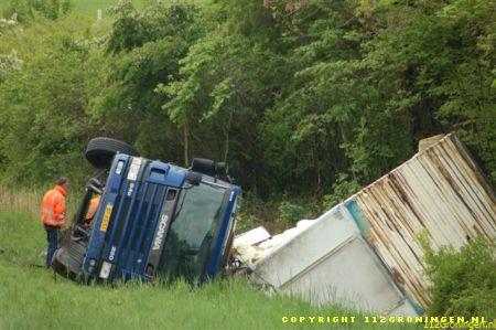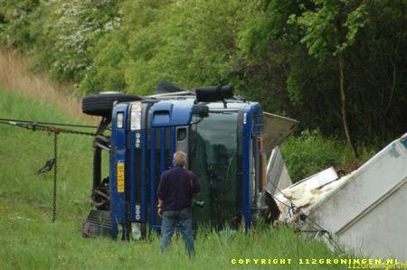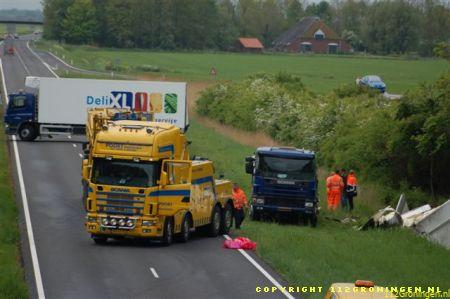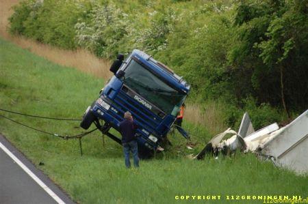 Donderdag in Ommelander Courant, Ten Boer – Een 41-jarige vrachtwagenchauffeur uit Renkum is maandagmorgen licht gewond geraakt op de N46 bij Sint Annen. De vrachtwagen kwam door onbekende oorzaak in de berm terecht. Na een stuurcorrectie schoot de auto door naar de andere kant van de weg. In een naastgelegen greppel kwam hij tot stilstand. De chauffeur kon met behulp van een omstander uit het voertuig worden gehaald. Hij is met armletsel naar een ziekenhuis gebracht. De politie maakt een registratie van het ongeval.