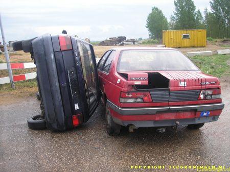 Sappemeer – Op de Molenraai heeft een ongeval plaats gevonden waarbij 2 auto s waren betrokken. Beide auto s namen deel aan een illegale street race. In beide auto s zat nog een slachtoffer. De eerste auto ligt op zijn Kant Na aankomst van de ambulance vatte de auto vlam.