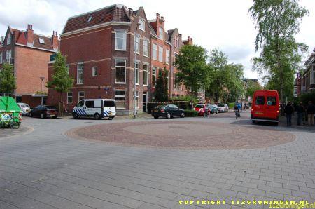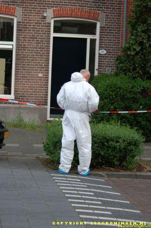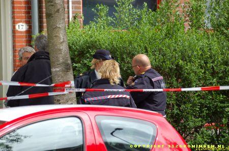 Groningen – Donderdagmiddag lag er een dode man op de stoep aan de Herman Colleniusstraat/ Wassenbergstraat. Achteraf bleek de man zelfmoord gepleegd te hebben door na beneden te springen vanuit een raam. De recherche stelde een groot onderzoek in omdat men eerst dacht dat de man mogelijk was geduwd. Veel publiek kwam langs dit drama, vandaar dit bericht. Alleen foto s van het onderzoek. (update 20:00 uur)