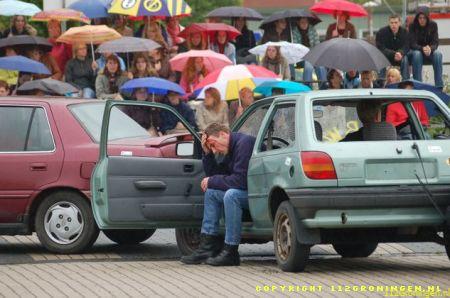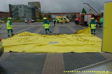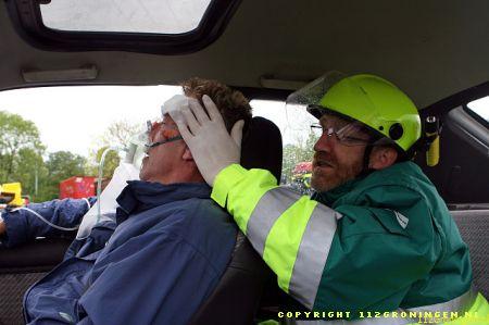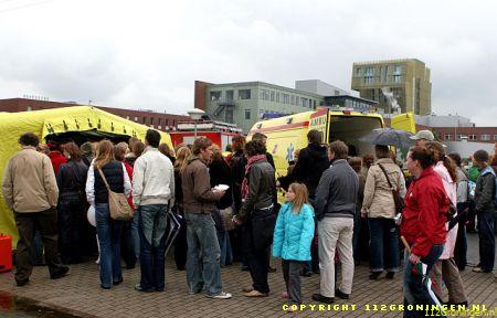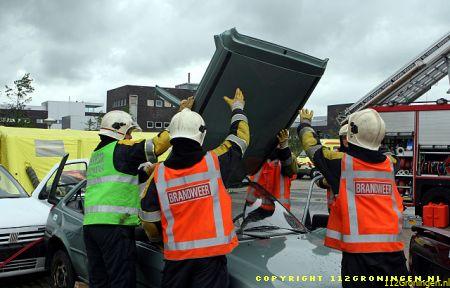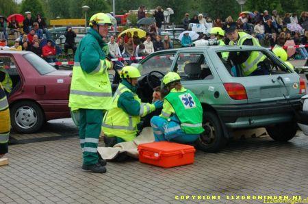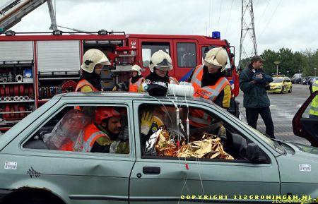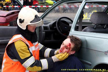 Groningen – Brandweer, ambulance, politie, SIGMA gaven vrijdag een demonstratie op een parkeerplaats op het Zernikecomplex in Groningen. De demonstratie was bedoeld voor studenten om te kijken wat er gebeurd als een groot ongeval is gebeurd. Bij de demonstratie werd dan ook uitleg gegeven. Grote afwezige was de traumahelikopter, deze kreeg twee minuten voor het begin van de demo een oproep en moest uitvliegen naar Godlinze. Bij de demonstratie waren vijf auto’s op elkaar ingereden en de hulpverleners moesten hun redden. Met vereende krachten werden de slachtoffers gered. Het ambulancepersoneel en het SIGMA team lieten wat van de medische hulpverlening zien en de brandweer liet zien hoe zij iemand uit een auto knippen. Na een uur was de demonstratie afgelopen en konden de studenten het terrein van dichtbij bekijken en vragen stellen aan de hulpverleners.