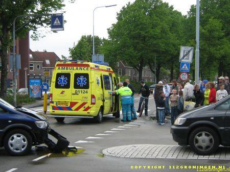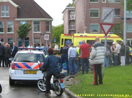 Groningen – Een 55-jarige fietsster uit Groningen is maandagmiddag op de Bedumerweg in haar woonplaats gewond geraakt. De vrouw stond te wachten op de Floresstraat om de Bedumerweg over te steken. Voor haar ogen gebeurde een aanrijding tussen twee auto’s. Een 61-jarige taxichauffeuse uit Groningen verleende op de kruising geen voorrang aan een 32-jarige automobiliste uit Kollumerzwaag. Door de aanrijding werd de personenauto weggedrukt. Deze kwam vervolgens tegen de fietsster aan. De fietsster is voor onderzoek overgebracht naar het ziekenhuis.Zie ook de video.