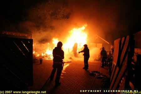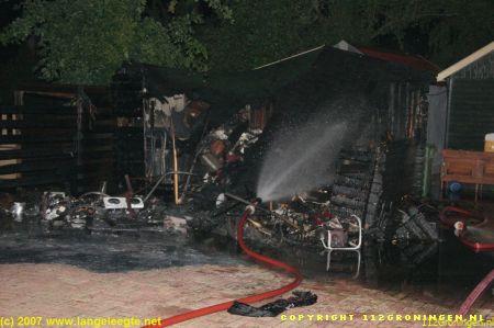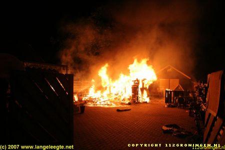 Wildervank – Vrijdagavond even na elf uur kwam de volgende melding binnen bij de brandweer van Veendam. Prio 1 buitenbrand (blokhut achter de woning) J. Kammingastraat 142 Wildervank eenheden: 833. Terplaatse stond de blokhut reeds vol in vuur en vlam, ook een naastgelegen schutting had reeds vlam gevat. Doordat er achter de brandende blokhut een schuur stond met een paard erin ontstond er enig paniek bij de bewoners. Maar door kordaat optreden van de brandweer kon worden voorkomen dat de brand oversloeg naar dit gebouw. De brand werd in eerste instantie bestreden met 2 stralen hoge druk, waarmee het vuur kon worden ingesloten. Ondertussen werd er lage druk afgelegd waarmee de schuur werd afgeblust. Rond half één waren alle slangen weer opgerold en keerde de brandweer, na nog even te hebben nagepraat met de bewoners en politie, terug naar de kazerne.