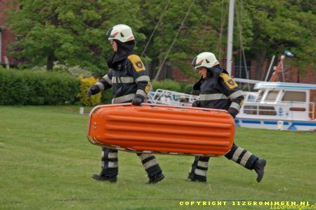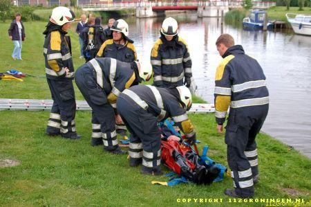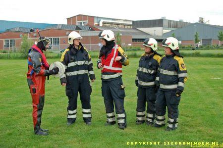 In scene werd gezet dat er mensen aan het vissen waren aan het Damsterdiep. Door een grote brand in een meterkast zagen zij geen andere uitweg dan in het water te springen. Hierdoor raakten ze onderkoeld met als gevolg dat ze bewusteloos waren. Omdat de sluizen van De Groeve open stonden was er een stroming wat er voor zorgde dat 1 drenkeling weg dreef.