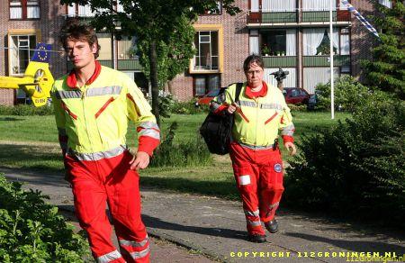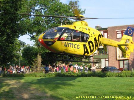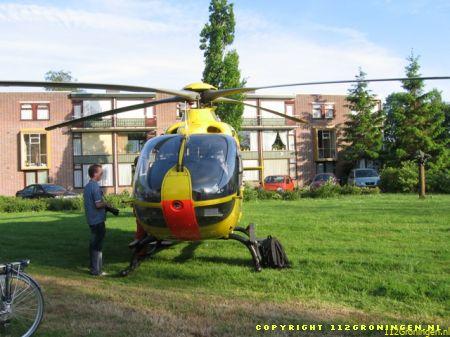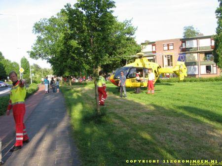 Surhuisterveen – Zaterdagvond om even voor zeven werd het traumateam van het UMCG opgepiept om uit te vliegen naar Surhuisterveen. Op dat moment stond de Lifeliner 4 net te tanken op Eelde waarvandaan ze met spoed richting Surhuisterveen vertrokken. Hier was op de Jan Binneslaan een nog jonge brommerrijder door nog onverklaarbare wijze van de weg geraakt. Door de klap had de jongen letsel over zijn hele lichaam. Na behandeling ter plaatse door het ambulancepersoneel dat geassisteerd werd door het Mobiel Medisch Team, dat vandaag een stagiair mee had, is de jongen per ambulance naar het ziekenhuis gebracht. De arts is meegegaan in de ambulance, de rest van het team is per helikopter terug gegaan naar het ziekenhuis. Het ongeval zorgde voor zoveel bekijks dat de politie linten moest spannen om de mensen op afstand te houden. Zie ook Lifeliner4Site en RadioNof