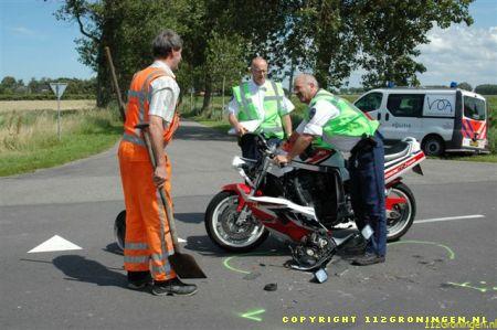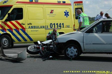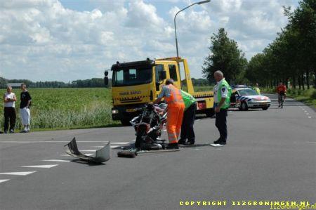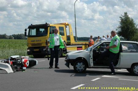 De bestuurder van de motor probeerde de auto te ontwijken maar werd in de flank geraakt. De bestuurder van de motor is door het personeel van de ambulance die geassisteerd werd door het traumateam onderzocht en later per ambulance met onbekend letsel naar een ziekenhuis vervoerd. De Voa heeft een sporen onderzoek ingesteld waarna Berger Faber uit Baflo beide voertuigen heeft afgesleept.