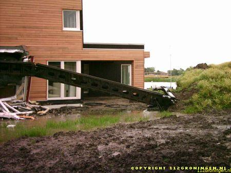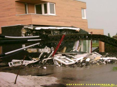 Deze kwam op een serre van een woning terecht en beschadigde de gehele woning.