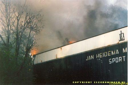 Groningen - Groningen in 1995 - Op een zondagmorgen werd de brandweer gealarmeerd voor een buitenbrandje bij de sporthal aan de Paterwoldseweg/ Concourslaan.