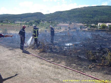 Frankrijk – Bij de ingang voor de camping vlakbij Bedarieux in Frankrijk was een behoorlijke brand ontstaan.
