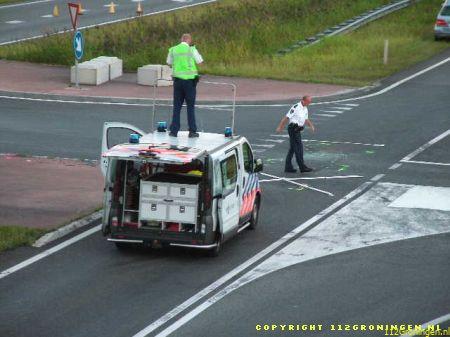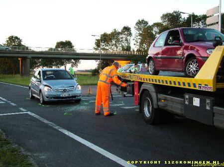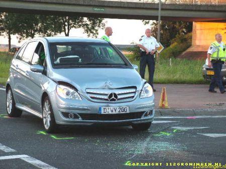 Noordbroek – Bij een aanrijding op de N33 bij Muntendam is zaterdagvond een Duitse vrouw gewond geraakt. Een 80-jarige vrouw uit Glimmen reed op de N33 en wilde de A7 richting Groningen opdraaien. Bij haar in de auto zat een 48-jarige man uit Amsterdam. Een echtpaar uit Dusseldorf (Duitsland) kwam uit tegengestelde richting en reed rechtdoor. De vrouw zag de 71-jarige bestuurder en zijn 70-jarige vrouw over het hoofd, waarna een aanrijding ontstond. Alleen de Duitse vrouw raakte gewond. Vermoedelijk liep ze een gebroken pols en borstletsel op. De auto’s raakten fors beschadigd en werden afgesleept. De politie maakt een registratie van het ongeval. (www.politie.nl)