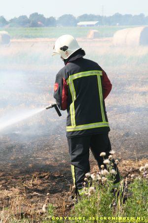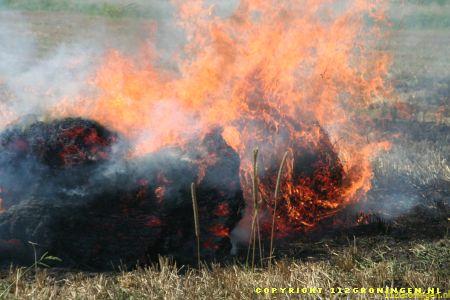 De brandweer van Ter Apel heeft de baal uitelkaar getrokken en met hogedruk geblust.