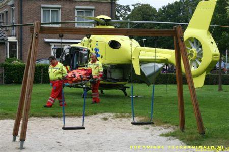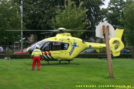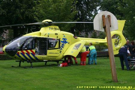 De man, in de leeftijd van circa 55 jaar, was op een ladder bezig geweest om het dak van zijn carport te reinigen. Door nog onbekende oorzaak, is hij voorover gevallen waarna hij door het glas viel. Waarna hij op zijn hoofd op de vloer van de carport terecht kwam. Toegesnelde politie en ambulancepersoneel hebben direct eerste hulp verleend. Het slachtoffer is met de traumahelikopter overgevlogen naar het Universitair Medisch Centrum in Groningen.