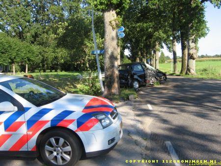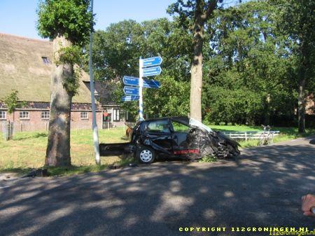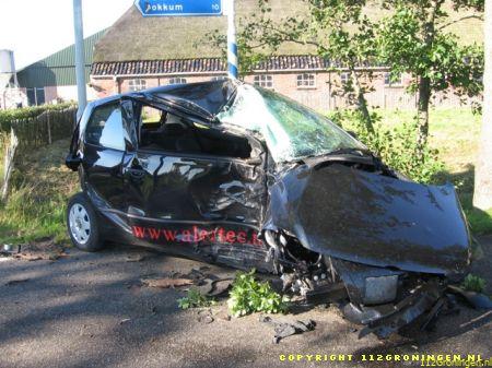 Door de stuurcorrectie verloor de man de macht over het stuur, ramde een boom en kwam tot stilstand tegen een lantaarnpaal die door de klap afbrak. Over de gehele driesprong waren de onderdelen van de auto terug te vinden en door de klap is het motorblok in de sloot aan de overkant van de weg terecht gekomen. De automobilist in per ambulance met onbekend letsel afgevoerd naar het ziekenhuis. Bergingsdienst Van Kammen had maarliefst twee bergingsvoertuigen nodig om de ravage die was aangericht op te ruimen. (www.radionof.nl)