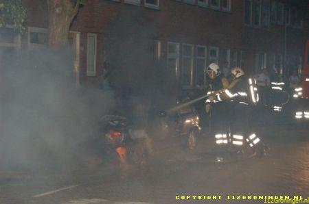 Groningen – Zondagavond omstreeks tien voor negen stond in de Menadostraat een Nissan Micra in brand. Aanvankelijk is nog geprobeerd met een brandblusser de brand te blussen, maar dit was helaas niet gelukt. Ongeveer tien minuten na aankomst van de brandweer was de brand al geblust, en kon de ploeg van de Sontweg terug naar de kazerne. Berger Poort sleepte het voertuig af.Over de oorzaak is nog niks te zeggen.