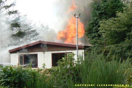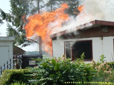 Kropswolde – Woensdag middag om 12.41 kreeg de brandweer van Hoogezand een melding van een caravan(chalet) brand achter de Gulf benzinestation op de Woldweg in Kropswolde.