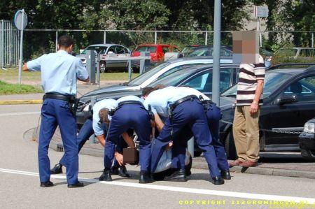Eelde – Onbekende man werd door een aantal agenten tegen de grond gewerkt en in de boeien geslagen bij Eelde vliegveld, even later werd hij afgevoerd naar een aparte ruimte.