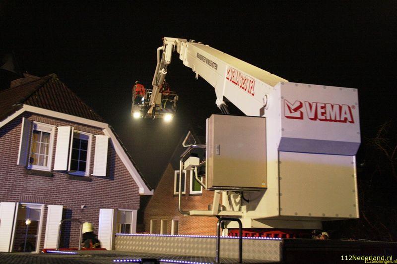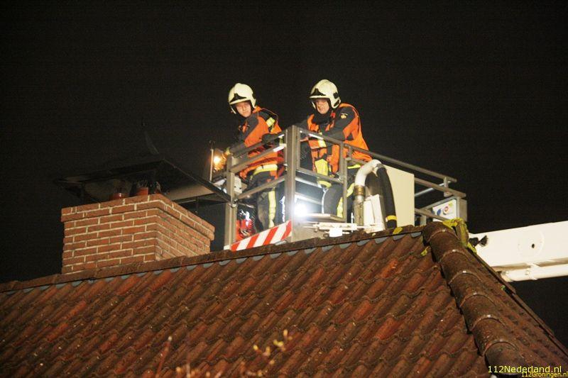 In het begin was er wat rook en vuur zichtbaar uit de schoorsteen. De bewoners hebben de openhaard nog uit kunnen maken zodat de schade beperkt bleef.