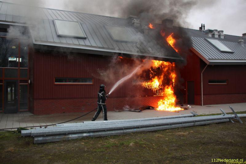 De brandweer werd opgeroepen voor een buitenbrand, maar al snel werd duidelijk dat het ging om een brand in een gebouw. Omdat de waterwinning moeilijk te vinden was werd er opgeschaald naar middelbrand. Een afvalcontainer is in brand gestoken, waarna ook het clubgebouw in de brand vloog. De brand is vermoedelijk aangestoken. Even verderop het terrein lag een aantal gebruikte lucifers. Bij de brand is voor zover bekend niemand gewond geraakt. De brand heeft grote schade aangericht aan het pas geopende clubgebouw.