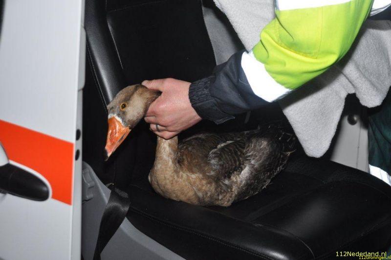 Groningen - Een gans is vanmiddag om 17:15 uur gered door de brandweer en de Dierenambulance Groningen. Het dier vloog met een vijftal Ganzen onder de Korrebrug door,waarbij 1 hard tegen de brug vloog aldus een omstander.