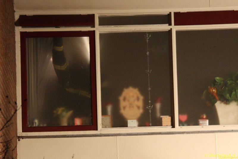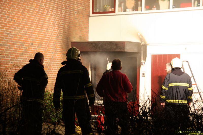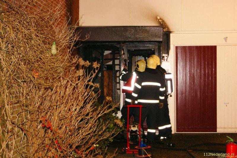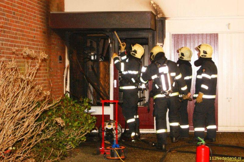 Zij hoorde glasgerinkel en zag even later dat een luifel bij de voordeur en inmiddels ook de hal in brand stond.