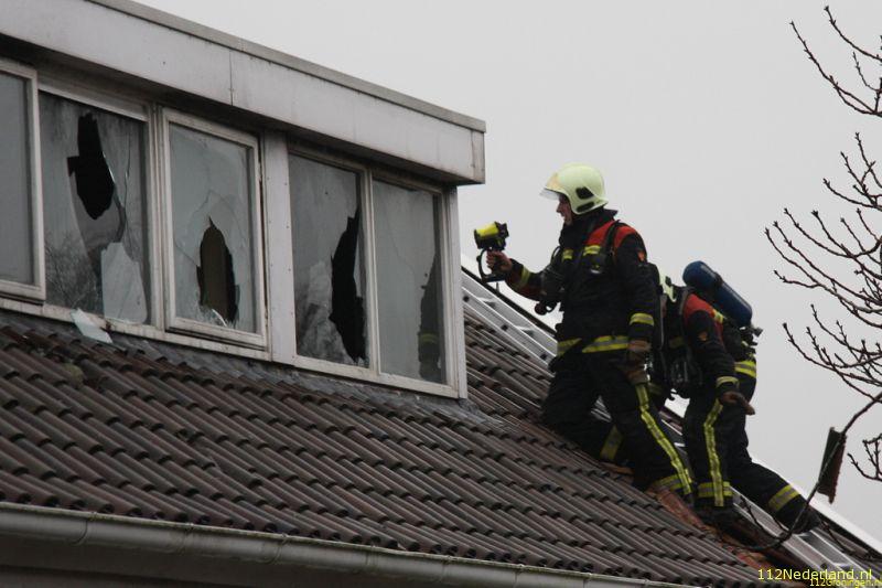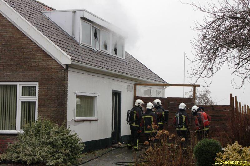 De bovenverdieping is uitgebrand. De brand is begonnen aan de achterzijde van de woning in de slaapkamer.