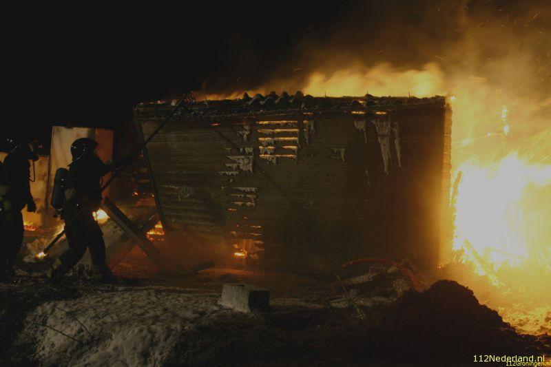 Drachten - Even na 01:30 in de nacht van oudjaarsdag naar nieuwjaarsdag kwam er een melding binnen van een uit slaande schuurbrand aan de Oprijlaan.