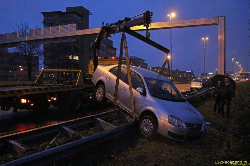 Arnhem - Gevaarlijke bocht Velpbroekcircuit richting IJsseloordweg N325 Arnhem op het moment. Al zeker 6 auto's hebben daar zondag een ongeval gehad.