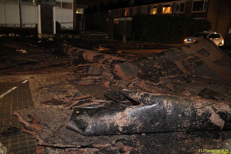 Hoe groot de schade is valt nog niet te zeggen. Het dak van het Molukse kerkgebouw ligt op straat, ook veel rommel is daarbij naar beneden gekomen. Een aantal mensen die in de kerk aanwezig waren om de kerstboom af te tuigen, bleven ongedeerd. Ook geparkeerde auto’s hebben schade opgelopen vanwege het weggewaaide dak. Dit kwam ook in tuinen van omwonenden terecht. De gemeente kwam ter plaatse om te controleren of er asbest is verwerkt in het dak. Dit is nog niet bekend of dat ook het geval is. De Meerkoetstraat is door de politie afgesloten.