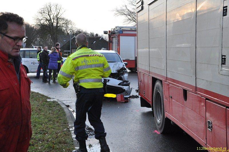Donderen, donderdag 5 januari: Vanmiddag om 15.25 uur kreeg de brandweer van Vries de melding binnen van een verkeersongeval, aan de Noordenveldweg – Norgerweg in Donderen. Ter plaatse werd er een personenauto aangetroffen, die een aanrijding had gehad met een vrachtwagen. De vrachtwagen had waarschijnlijk de personenauto over het hoofd gezien. De bestuurder en bijrijder werden door het ambulancepersoneel onderzocht. De bijrijder is voor nader onderzoek, door de ambulance overgebracht naar een ziekenhuis. Verdere bijzonderheden zijn niet bekend.