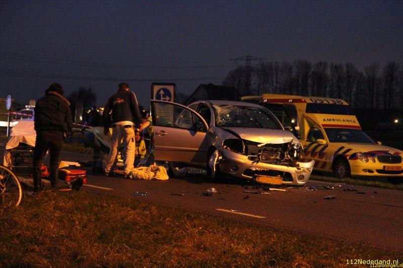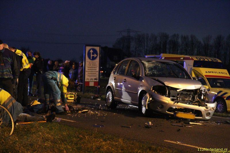 De fietser zag daarbij een tegemoetkomende automobilist over het hoofd en een aanrijding was het gevolg. De auto raakte daarbij van zijn weghelft en kwam in aanrijding met een andere auto. Twee ambulances kregen assistentie van het Mobiel Medisch Team uit Amsterdam. Deze laatste kwamen niet met de opgeroepen traumahelikopter maar met de auto vanuit Amsterdam. De fietser en de bestuurder van de auto zijn met onbekende verwondingen en met spoed naar het ziekenhuis vervoerd. De verkeers ongevallen analyse van de Utrechtse politie deed onderzoek naar de toedracht, daarbij is de kruising enige uren afgesloten geweest voor autoverkeer. Het verkeer vanuit Nijkerk en Bunschoten was omgeleid.