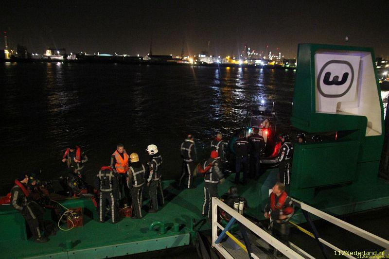 Een personenauto zou te water zijn geraakt. Het is niet bekend of er nog iemand in het voertuig zit. Brandweerduikers uit Schiedam en Capelle a/d IJssel maakte zich klaar om het water in te gaan. De brandweer Vlaardingen kwam met de brandweerboot ter plaatse. Net op het punt dat deze te water gelaten zou worden werd de actie afgeblazen. Het zou om een gedumpte auto, waar niemand meer inzit gaan. De brandweer, politie en ambulancedienst rukte daarop in. De auto is te water geraakt nabij de Lloydkade en dreef uiteindelijk af richting de Schiekade. Daar is de auto naar de bodem gezonken. Het havenbedrijf zal later de auto lokaliseren en bergen.