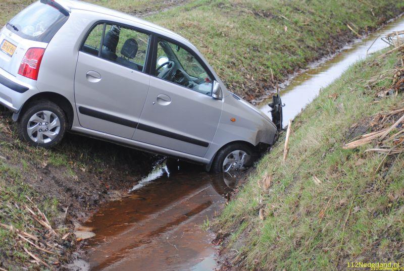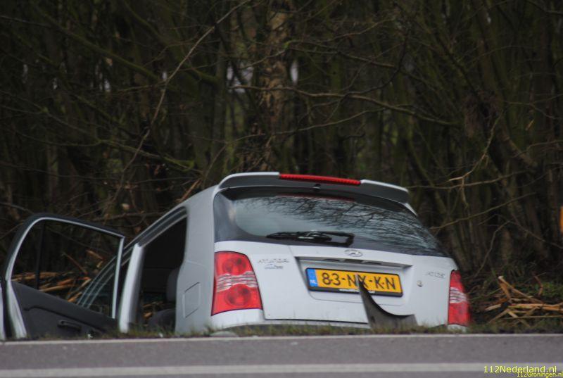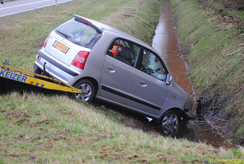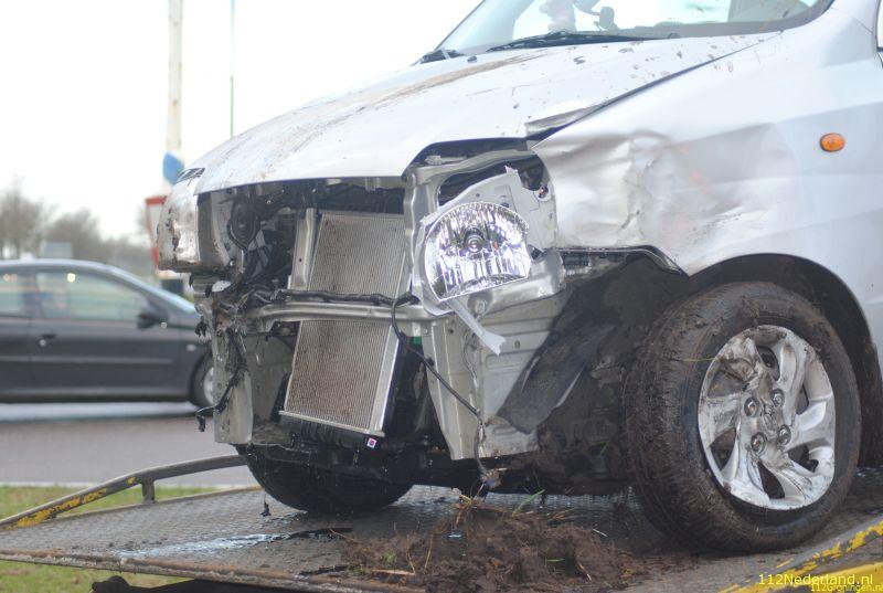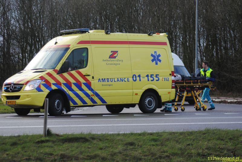De ene auto kwam in een nagenoeg droge sloot terecht , en de ander kwam enkele meters verder tot stilstand. Een persoon is bij de aanrijding gewond geraakt en is met onbekend letsel naar het ziekenhuis vervoerd.