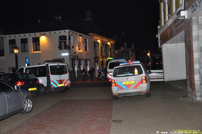 Een viertal omstanders begonnen zich er mee te bemoeien. Ondanks het verzoek van de politie weg te gaan, bleef het viertal vervelend. Intussen waren nog twee agenten gearriveerd en er ontstond een vechtpartij. Hierbij werd één agent tegen de grond geslagen en verloor zijn bewustzijn. De vier verdachten werden overmeesterd en in de boeien geslagen. Toch kon een van de mannen met de handboeien om ontsnappen. Het is onduidelijk of hij later nog is aangehouden.