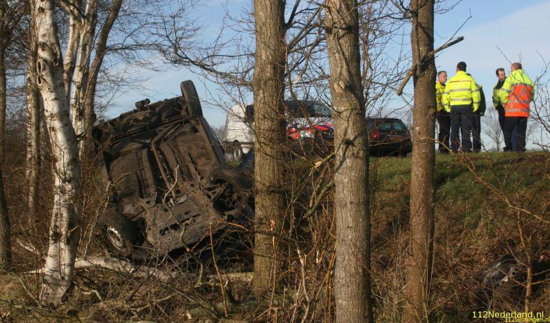 Zij raakte in haar voertuig door onbekende oorzaak in de berm, botste zijdelings tegen een boom en sloeg aan de overkant van de weg over de kop en kwam in de bosjes op de zijkant tot stilstand. Met hulp van ambulance personeel is ze uit de auto gehaald en per ambulance overgebracht naar het ziekenhuis. De auto was door het ongeval rijp voor de sloop en werd door een berger afgesleept. De verkeers ongevallen analysegroep van de politie heeft voor hun verslag de sporen van het ongeval vast gelegd.