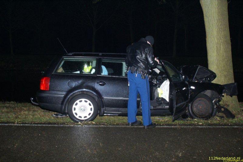 De man reed op de Verlengde Vaart NZ richting Nieuw-Amsterdam toen hij door nog onbekende oorzaak naast de weg kwam en toen in de linkerberm, pal naast het kanaal frontaal tegen een boom botste. Het slachtoffer is met onbekend letsel per ambulance overgebracht naar het Universitair Medisch Centrum in Groningen. De brandweer van Klazienaveen heeft bij het ongeval assistentie verleend. De politie heeft onderzoek gedaan naar de oorzaak van de botsing, de bestuurder had niet gedronken. De onherstelbaar beschadigde auto is later in de nacht door bergingsbedrijf Koolen weggesleept.