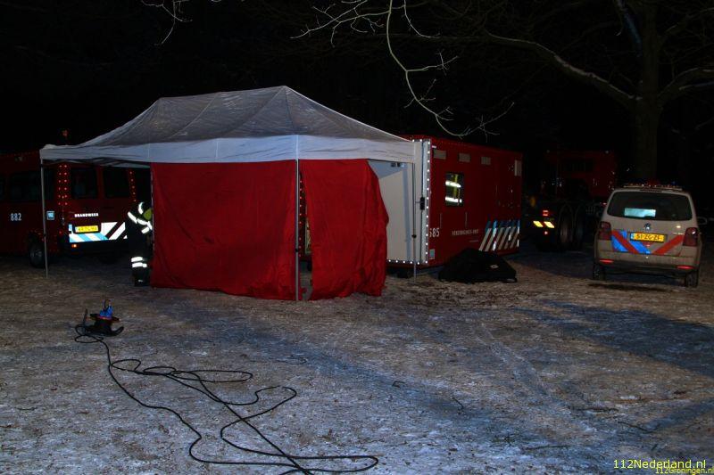 Bij aankomst werd al snel duidelijk dat er mogelijk iemand door het ijs was gezakt. Voorbijgangers kwamen 2 hondjes tegen die bij het wak van het ijs zaten. Deze sloegen gelijk alarm en zo kwam de zoektocht opgang. De duikers van brandweer Den Bosch zijn onder het ijs aan het zoeken. Ook staat de Brandweer uit Wanroij er met de haakarmchassis die de verzorgingscontainer uit Erp hebben opgehaald. De brandweer is nog steeds op zoek. Dit alles speelt zich af op de Peter Ebbenweg te Sint Hubert.