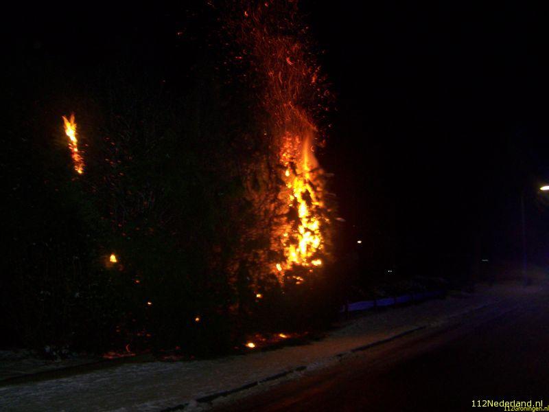 Een voorbij rijdende automobilist zag vlammen uit de coniferenhaag komen. Hierop is de automobilist gelijk gestopt en heeft 1-1-2 gebeld. De brandweer is met spoed gekomen omdat de conifeer tussen 2 huizen instond. Er hebben zich de afgelopen maand al meerdere coniferenbranden plaatsgevonden. De politie surveilleert is al meer in Geldermalsen. Het lijkt op baldadigheid en tot op heden is het gebleven bij enkele coniferen, een prullenbak en een schuurtje en kon erger worden voorkomen. Bij incidenten of verdachte situaties kunt u bellen met het nummer 0900-8844 van de politie.