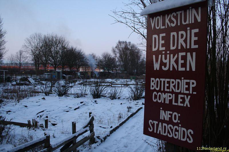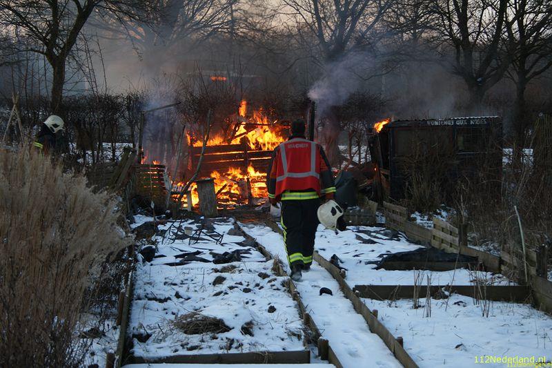 Doordat de sloten bevroren zijn kunnen onbevoegden toch toegang tot het terrein krijgen. Volgens buurtbewoners en enkele tuiniers gaat het dan ook vrijwel zeker om brandstichting. Voor de brandweer was er bij aankomst weinig redden meer aan. De schuur was al volledig verwoest. Overslag naar een naastgelegen schuurtje werd voorkomen. Men kon met de auto niet bij het schuurtje komen en heeft met brandblussers de brandende restanten zo goed mogelijk geblust. Of het daadwerkelijk om brandstichting gaat kan niet met zekerheid worden gezegd.