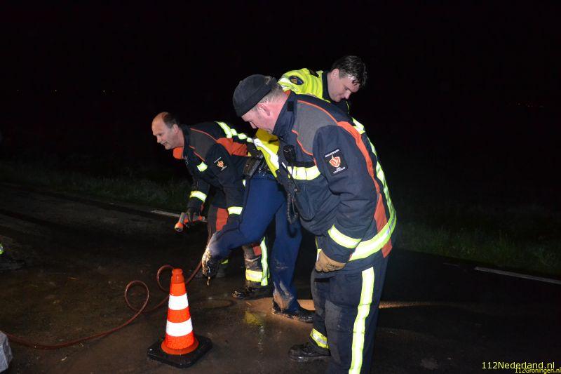 Het was 1 waterballet, de brandweer maakte een tijdelijke oplossing, daarna kwam een man van de woningbouw de klus verder klaren. De bevelvoerder heeft de portiek drooggetrokken. Na 20 minuten was de klus geklaard en keerde de brandweer terug.