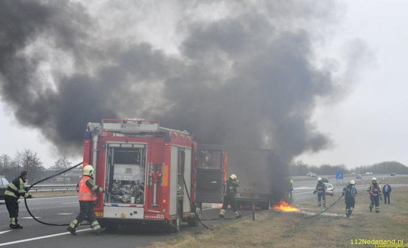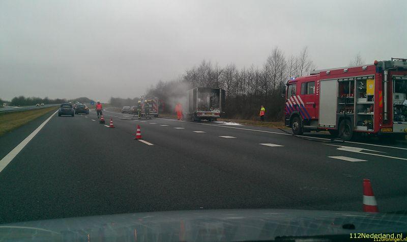 De chauffeur die onder weg was met een lading specerijen en sojaolie naar een bedrijf in Marum vernam op een gegeven moment dat er iets niet in de haak was. De chauffeur kon de auto bijtijds op de vlucgtstrook parkeren. Niet veel later sloegen de vlammen eruit. Door de brand zijn zowel de lading als de auto geheel verloren gegaan. De brandweer van Leek wist met One-seven de brand snel te blussen. De chauffeur kwam met de schrik vrij. Het verkeer op de A7 werd tijdens het blussen even stilgezet, wat direct een file tot gevolg had. Berger Collewijn heeft de totaal vernielde vrachtwagen afgesleept. De politie maakte rapport op van de brand.