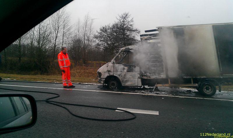 Nuis - Op de A7 ter hoogte van Nuis is even voor half een vanmiddag een bestelbus door een brand verloren gegaan.