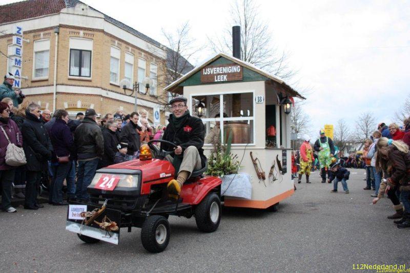 Er was een grote opkomst tijdens de optocht, er werd gestart vanaf de parkeerplaats bij Nienoord. In een lange stoet van versierde mensen en personen werd er de ronde gelopen vanaf de parkeerplaats Nienoord, via de haven naar de Bosweg en zo door naar de de Dam en Tolbert. Er waren circa 25 ondedelen te zien. Na afloop van de optocht was er nog een prijsuitreiking. Tijdens de optocht waren verschillende wegen in en rond het centrum van Leek gestremd. Doormiddel van verkeersregelaars werd alles in goede banen geleid. Kortom het was een geslaagde Carnavalsmiddag in Leek.
